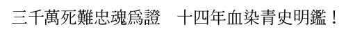 在中国的领土上,经过历朝历代,曾为了防卫国土而建造了长城的伟大建筑, 这是人类历史上所罕见之浩大的国防工程,充分显示出中国的防御重於侵略之民族性。 中国的长城直到如今还是令所有参观的人,都感到肃然起敬。但是,事实上,历史的长 城,并没有办法保障中国不受敌人的侵略,而中国的军民,曾经在抗日战争之中 ,以中国人的生命,筑起一条又一条的御敌防线,成为不屈不挠的血肉长城,这 个让中国境内每寸山河,都被血泪浸泡的历史事实,以及中国人绝对不肯屈 服的抵抗意志,就是中国人永远不能被敌人消灭的关键所在,这些在中国境内无 数的血肉长城历史,应该永远活在历史的记忆之中,也活在所有的中国人心中。虽然抗日的历史事实,还有太多可以叙述的地方,但是本书在此不得不告一 个段落。作者衷心的希望所有的中国人都应该知道,中国在抗日战争中的重 大牺牲与付出,是造成世界正义能够战胜法西斯侵略者的主要原因,这是中国人所有血 泪结成的不朽荣耀,只要中国人能记得,国际强权就没有办法抹杀与淡化。