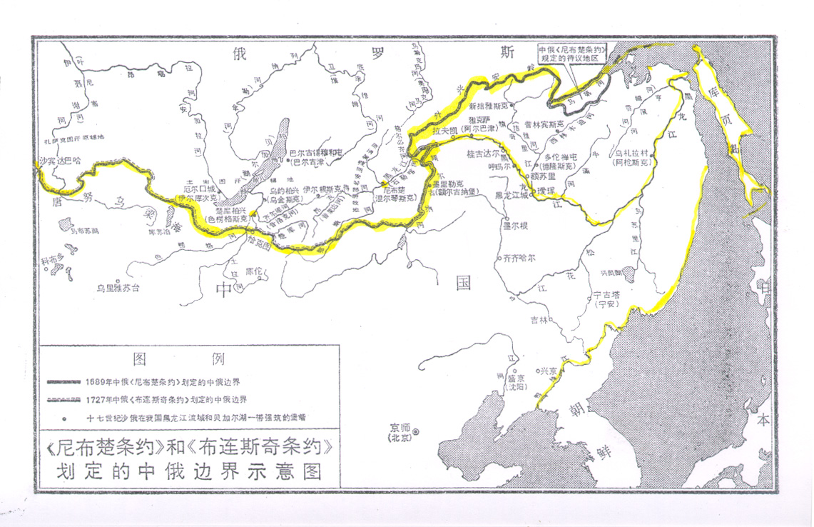 《尼布楚条约》和《布连斯奇条约》划定的中俄边界示意图 6-7